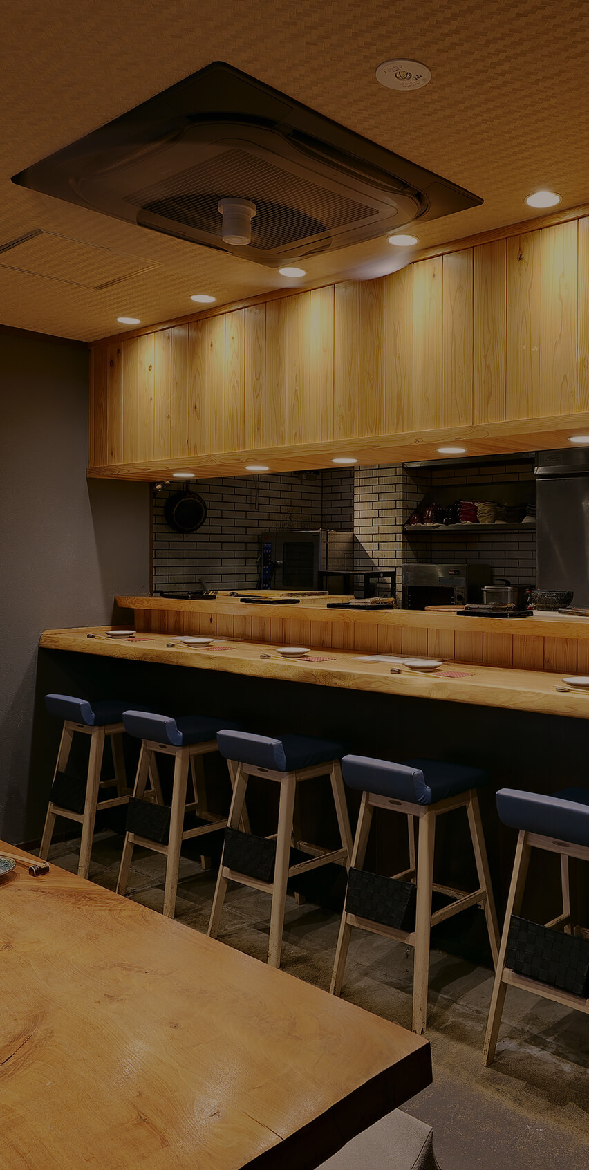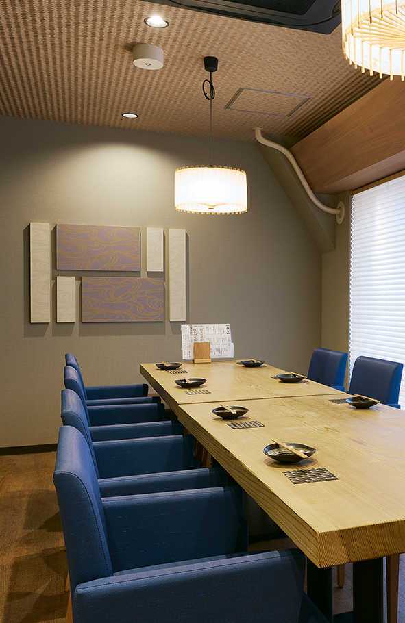 店内には、職人の技と息遣いを感じるカウンター席、ゆったりと過ごせるテーブル席、そして貸切も可能な個室をご用意。