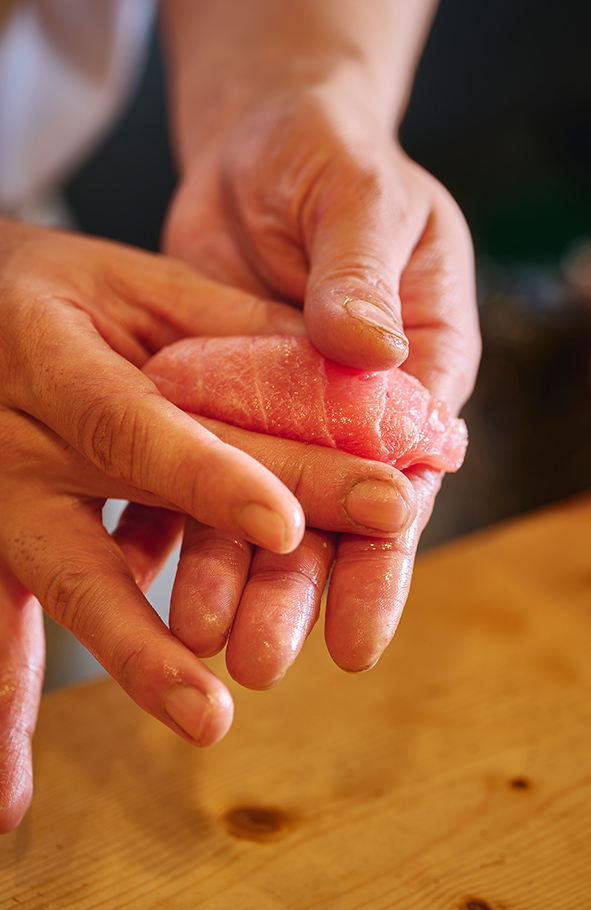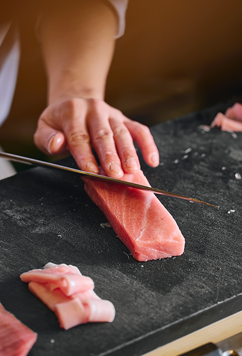 江戸前の粋を礎に、関西らしいしなやかさと共に、今日も、旬の一貫に想いを込めて握ります。